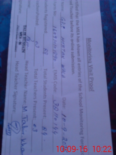 | Certified that this School was Inspected by the Undersigned MEA/DMO Today and the Information Stated Above is as Per Record. | |||||