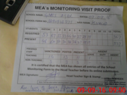 | Attendance Register | Head Teacher | MEA with School | Visit Proof |