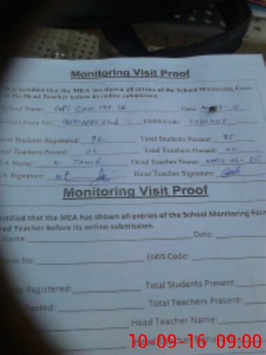 | Attendance Register | Head Teacher | MEA with School | Visit Proof |