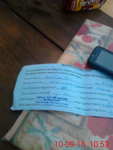 | Name: Wa**** Ri**** Designation: (School Headmaster's/Headmistress's) ESE Phone/Cell Number: 03**** |