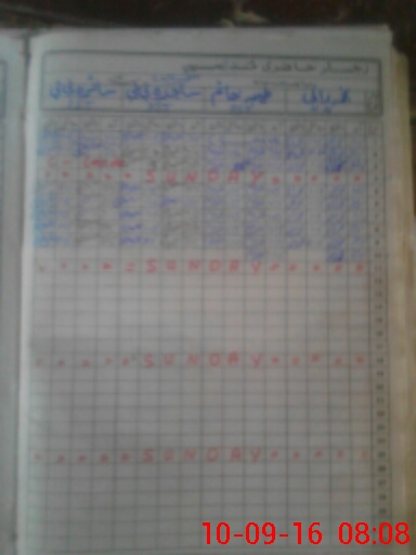 | CNIC | Full Name | Designation | R/C | Absence During Last Calender Month |