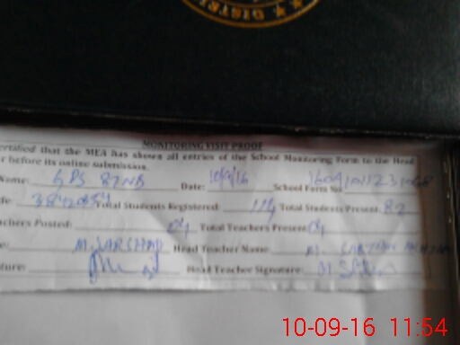 | Attendance Register | Head Teacher | MEA with School | Visit Proof |