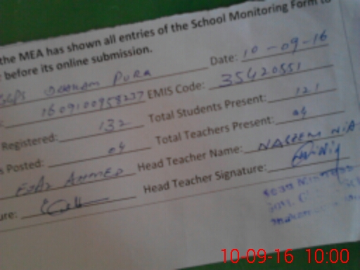 | Attendance Register | Head Teacher | MEA with School | Visit Proof |