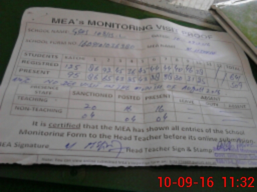 | Attendance Register | Head Teacher | MEA with School | Visit Proof |
