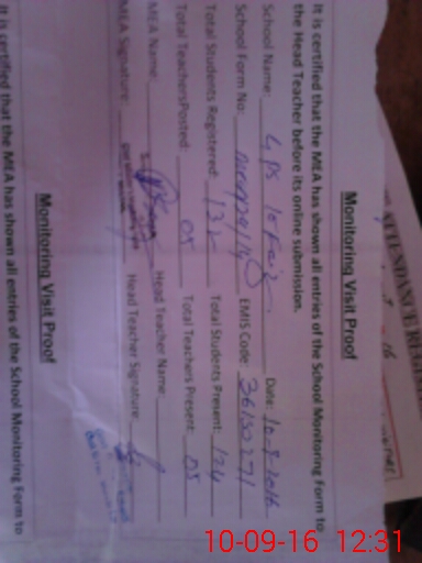 | Certified that this School was Inspected by the Undersigned MEA/DMO Today and the Information Stated Above is as Per Record. | |||||
