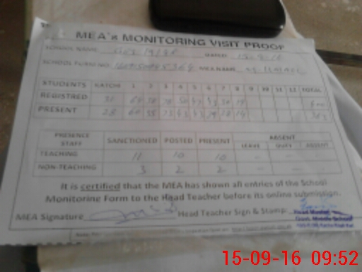 | Attendance Register | Head Teacher | MEA with School | Visit Proof |