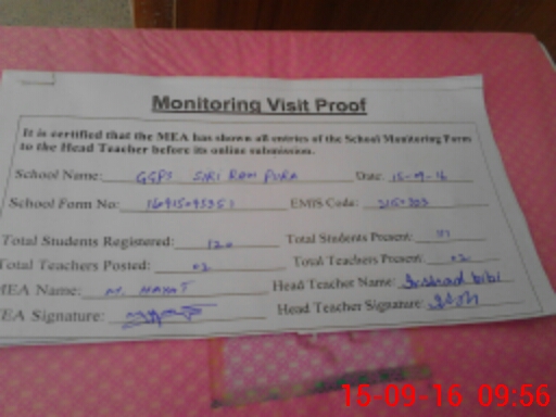 | EMIS Code: 31150333 | Name of School: GGPS SARI RAM PURA | |||