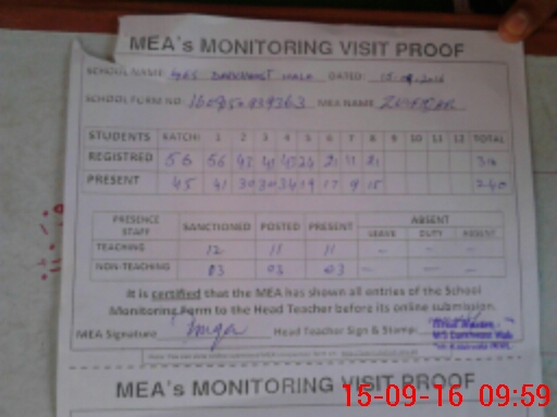 | Certified that this School was Inspected by the Undersigned MEA/DMO Today and the Information Stated Above is as Per Record. | |||||