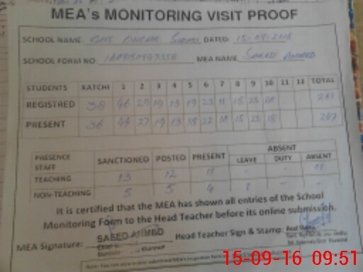 | Certified that this School was Inspected by the Undersigned MEA/DMO Today and the Information Stated Above is as Per Record. | |||||