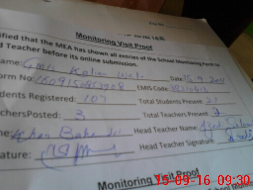 | Attendance Register | Head Teacher | MEA with School | Visit Proof |
