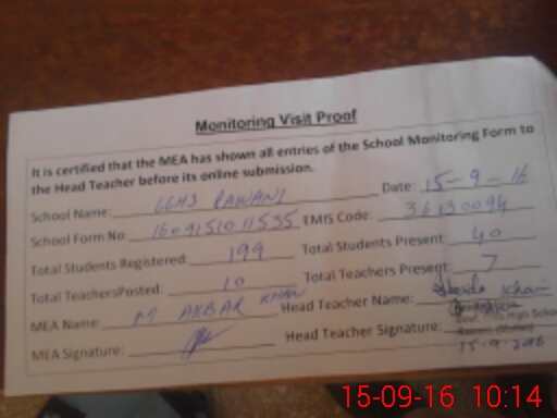| Certified that this School was Inspected by the Undersigned MEA/DMO Today and the Information Stated Above is as Per Record. | |||||