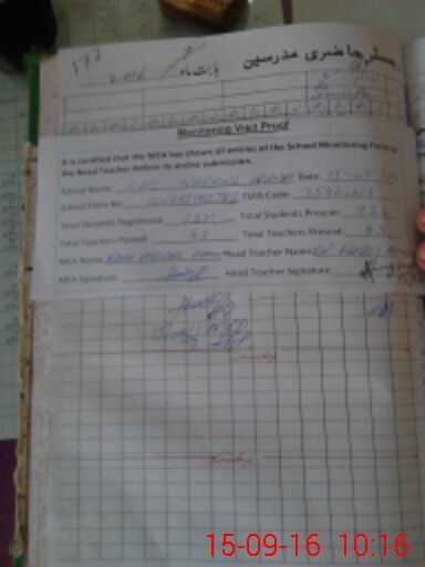 | Attendance Register | Head Teacher | MEA with School | Visit Proof |