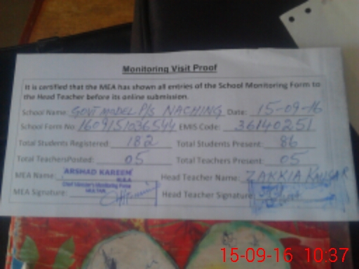 | Certified that this School was Inspected by the Undersigned MEA/DMO Today and the Information Stated Above is as Per Record. | |||||