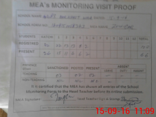 | Attendance Register | Head Teacher | MEA with School | Visit Proof |