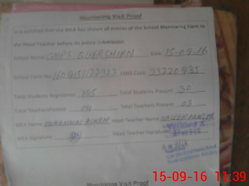| EMIS Code: 33220935 | Name of School: GMPS QURESHIAN | |||
