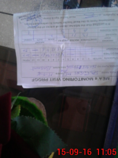 | Monitoring Date: 15-09-2016 | Start Time: 15-09-2016 10:32 AM | End Time: 15-09-2016 11:16 AM | Name of MEA: Z.**** Ba**** Al**** | |