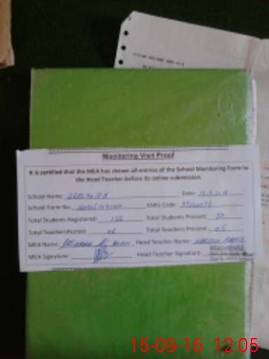 | Attendance Register | Head Teacher | MEA with School | Visit Proof |
