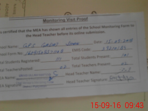 | EMIS Code: 39210184 | Name of School: GPS GADDAI SHAH PO PAKPATTAN | |||