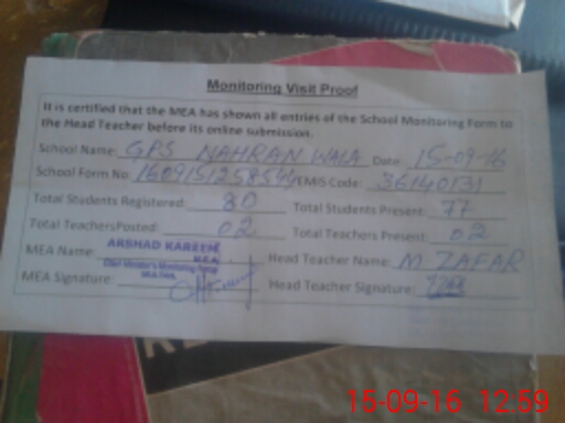 | EMIS Code: 36140131 | Name of School: GPS NAHRAN WALA P/O BAIT KACH | |||
