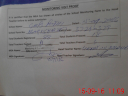 | Certified that this School was Inspected by the Undersigned MEA/DMO Today and the Information Stated Above is as Per Record. | |||||