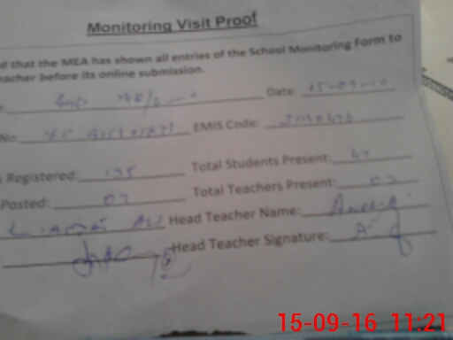 | Attendance Register | Head Teacher | MEA with School | Visit Proof |