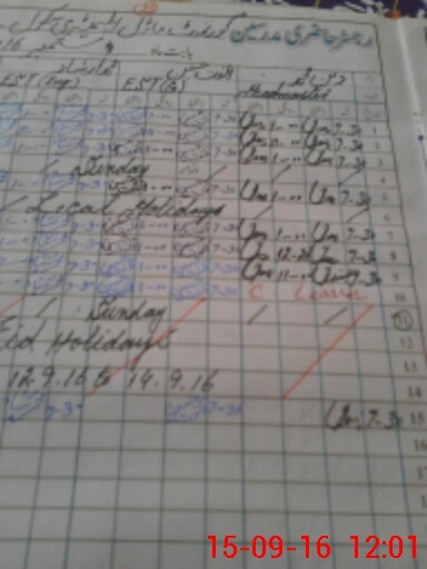 | CNIC | Full Name | Designation | R/C | Absence During Last Calender Month |
