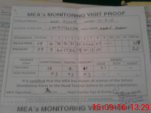 | Certified that this School was Inspected by the Undersigned MEA/DMO Today and the Information Stated Above is as Per Record. | |||||