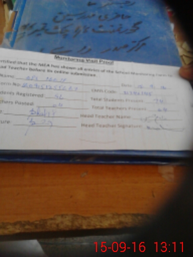 | Attendance Register | Head Teacher | MEA with School | Visit Proof |