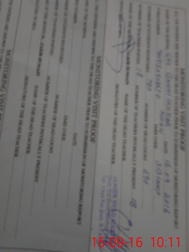 | Monitoring Date: 15-09-2016 | Start Time: 15-09-2016 09:08 AM | End Time: 15-09-2016 10:15 AM | Name of MEA: Za**** Hu**** | |
