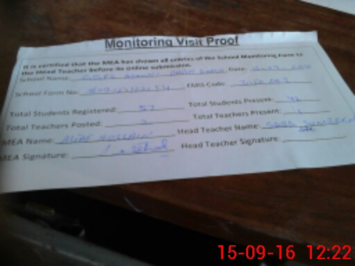 | Attendance Register | Head Teacher | MEA with School | Visit Proof |