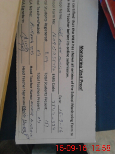 | Attendance Register | Head Teacher | MEA with School | Visit Proof |