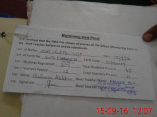 | Certified that this School was Inspected by the Undersigned MEA/DMO Today and the Information Stated Above is as Per Record. | |||||