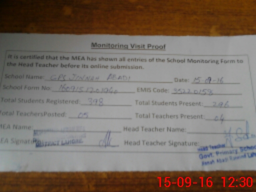| EMIS Code: 35220158 | Name of School: GPS JINNAH ABADI (OLD CHAH JAWANA) | |||