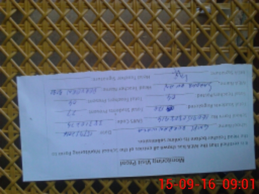 | Monitoring Date: 15-09-2016 | Start Time: 15-09-2016 08:03 AM | End Time: 15-09-2016 09:04 AM | Name of MEA: SA**** KH**** (R**** | |