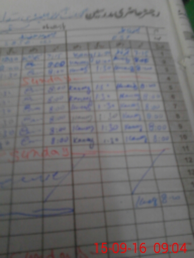 | CNIC | Full Name | Designation | R/C | Absence During Last Calender Month |