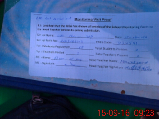 | Attendance Register | Head Teacher | MEA with School | Visit Proof |