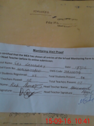 | Certified that this School was Inspected by the Undersigned MEA/DMO Today and the Information Stated Above is as Per Record. | |||||