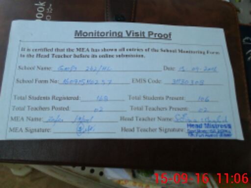 | Certified that this School was Inspected by the Undersigned MEA/DMO Today and the Information Stated Above is as Per Record. | |||||