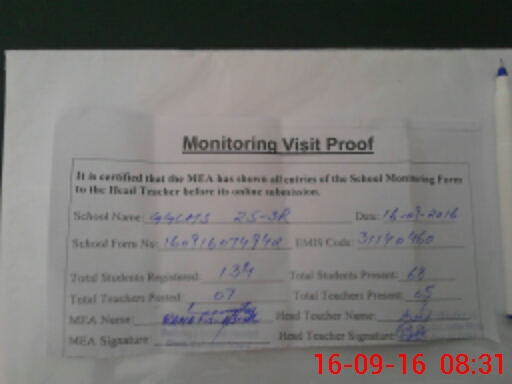 | Attendance Register | Head Teacher | MEA with School | Visit Proof |