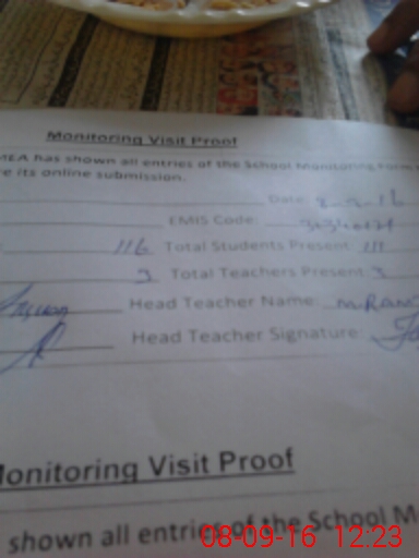 | Attendance Register | Head Teacher | MEA with School | Visit Proof |