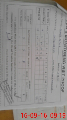 | Attendance Register | Head Teacher | MEA with School | Visit Proof |