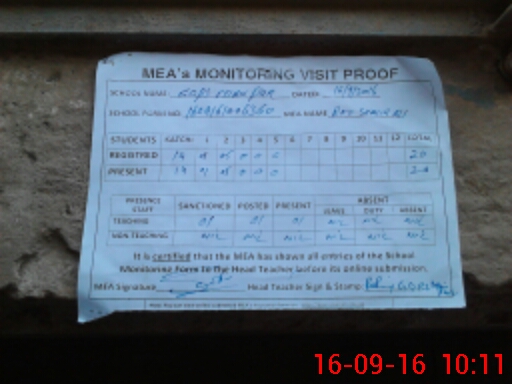 | Attendance Register | Head Teacher | MEA with School | Visit Proof |