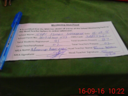 | Attendance Register | Head Teacher | MEA with School | Visit Proof |
