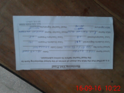 | Monitoring Date: 16-09-2016 | Start Time: 16-09-2016 09:31 AM | End Time: 16-09-2016 10:23 AM | Name of MEA: Kh**** Ha**** (R**** | |