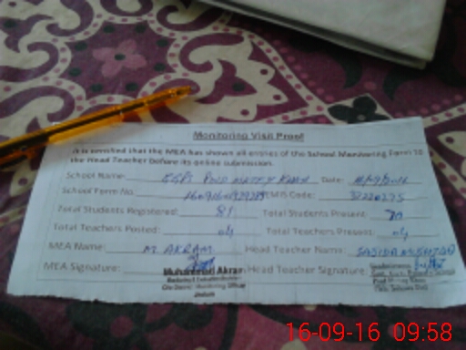 | Attendance Register | Head Teacher | MEA with School | Visit Proof |