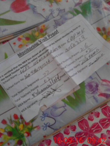 | Attendance Register | Head Teacher | MEA with School | Visit Proof |