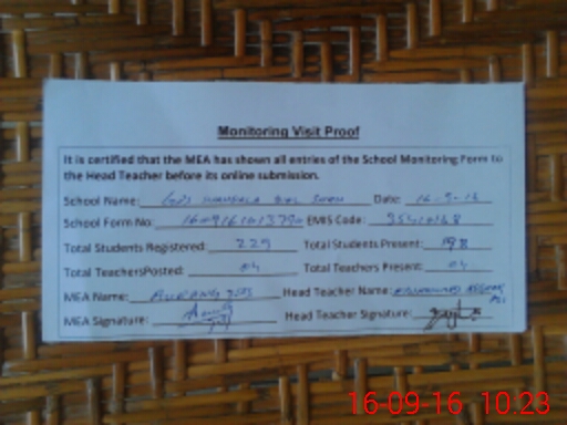| Attendance Register | Head Teacher | MEA with School | Visit Proof |