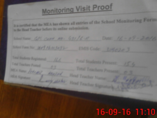 | Attendance Register | Head Teacher | MEA with School | Visit Proof |