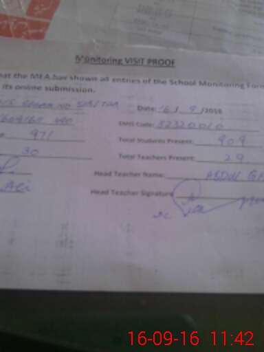 | Attendance Register | Head Teacher | MEA with School | Visit Proof |