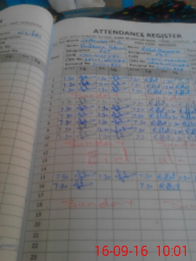 | Monitoring Date: 16-09-2016 | Start Time: 16-09-2016 09:35 AM | End Time: 16-09-2016 10:03 AM | Name of MEA: AL**** HU**** | |